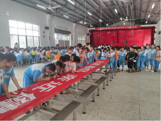 活动期间,通过向学生们讲述毒品预防知识,为学生发放禁毒宣传手册等方式,教育青少年认识新型毒品、毒品的危害以及切实提高新型毒品防范能力,帮助青少年学生树立起积极向上的世界观、人生观、价值观,并组织学生们在禁毒横幅上签名拒毒。