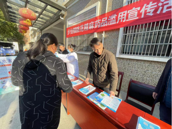 12月23日,为加深人民群众对精麻药品危害的认识,提高居民的禁毒意识,重点宣传精麻药品滥用危害。步仙镇禁毒办联合派出所、司法所、卫生院开展“防范精麻药品滥用”禁毒宣传活动。