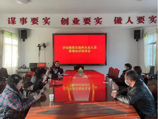 近日,步仙镇禁毒办联合司法所,对辖区重点娱乐场所从业人员开展禁毒知识培训。