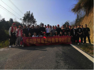 为了进一步普及禁毒宣传教育,使大家充分认清毒品的危害,激发广大党员干部积极参与禁毒斗争的热情,提高大家拒毒防毒意识和自觉抵制毒品侵袭的能力。毛田镇禁毒办联合禁毒分会在3月10日利用“3·12”植树节即将到来之际在毛田镇河山村公路旁进行义务植树,开展以“共创无毒环境,做绿色健康人”为主题的禁毒宣传教育党日活动。