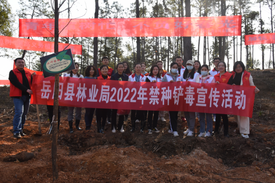 为落实打赢全县新一轮禁毒人民战争切实做好林业行业禁种铲毒工作,深入贯彻“绿水青山就是金山银山”绿色发展理念,2022年3月10日,岳阳县林业局结合3.12植树节活动组织二十余名党员和禁毒志愿者在县林科所开展禁毒宣传与植树造林活动。