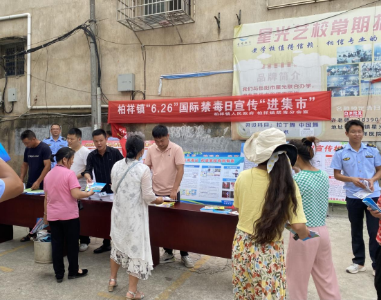 在第35个国际禁毒日到来之际,为普及毒品预防知识,不断提高居民拒毒防毒意识,6月23日,柏祥镇综治办联合司法所、应急站、市场所等部门站所开展了“6·26”国际禁毒日“爱生命,不吸毒”主题宣传进集市活动。