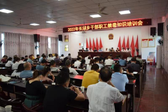 9月26日下午,长湖乡开展干部职工禁毒知识培训会。全乡党政班子成员、机关干部职工、各部门站所成员、各村干部全部参加。
