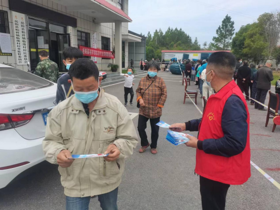 在核酸采样检测点出口位置设禁毒宣传点,居民做完核酸采样后,在出口处排队有序向居民发放禁毒宣传资料,引导群众要自觉抵制毒品,积极参与全民禁毒。在宣传禁毒知识的同时提醒大家要戴好口罩、保持好一米间隔距离,注意个人卫生,不要去人员密集的地方。