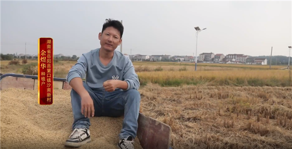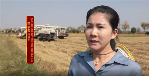 筻口镇丰瑞农机专业合作社理事长董敏芳:岳阳县地处美丽的洞庭湖畔,一直以来延续非常好的传统——双季稻种植区域。在现在这个时间节点上,粮食归仓了,才真正确保了粮食的安全。