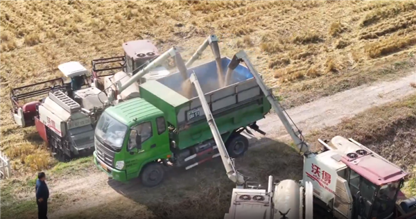 所以我们今年的这个联合社,集合了大家所有的资源,能够以最快的效率把粮食收到仓库中去。相对于去年来讲,我们增长了15%,我们基本上的产量都是在1200斤左右的湿稻谷的产量。所以,基本上可以确定,我们今年是个大丰收的年份。