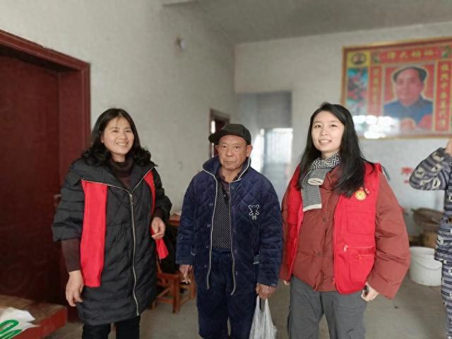 村党总支书记邹蕴仪带领在外乡友肖仁、陈恳、陈中杰、付锐和党员志愿者穿梭在乡间屋场各个楼栋,每到一户,都亲切地拉家常,了解他们的生产生活、外出务工、子女教育、年货置办等情况,认真聆听他们的心声和意见,同时宣讲了党和政府的惠民政策,并送上大米、油和新春问候,针对独居的困难群体,认真检查居住环境,并详细叮嘱安全知识。