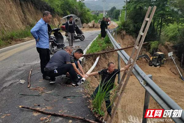 月田镇相思山村工作队协助抢修水毁道路,自来水管。