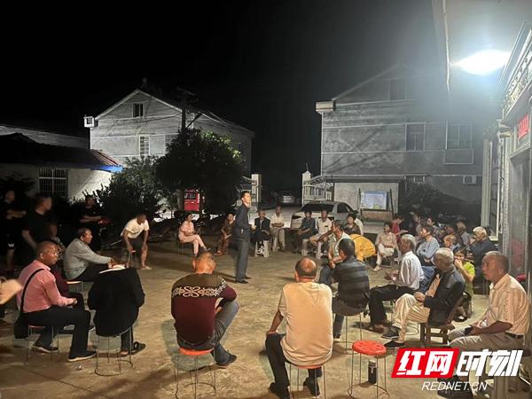 5月30日晚,岳阳县中洲乡北垸村屋场会。