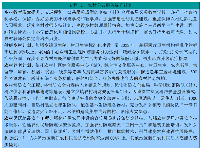 15.推动重点区稳步发展。洞庭湖、湘中南的县市区,是乡村振兴的重点和主战场。立足农业资源丰富、生产基础良好,发展特色优势产业,大幅提升农产品加工水平,加强基础设施建设,推动农村产业、城乡融合发展。到2035年,基本实现农业农村现代化。