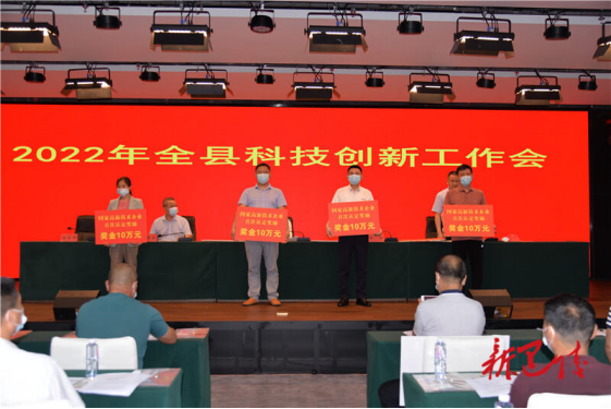 会上,李樱作全县科技创新工作报告,余望新宣读表彰奖励通报;19家单位上台受牌领奖,4家企业进行了交流发言。