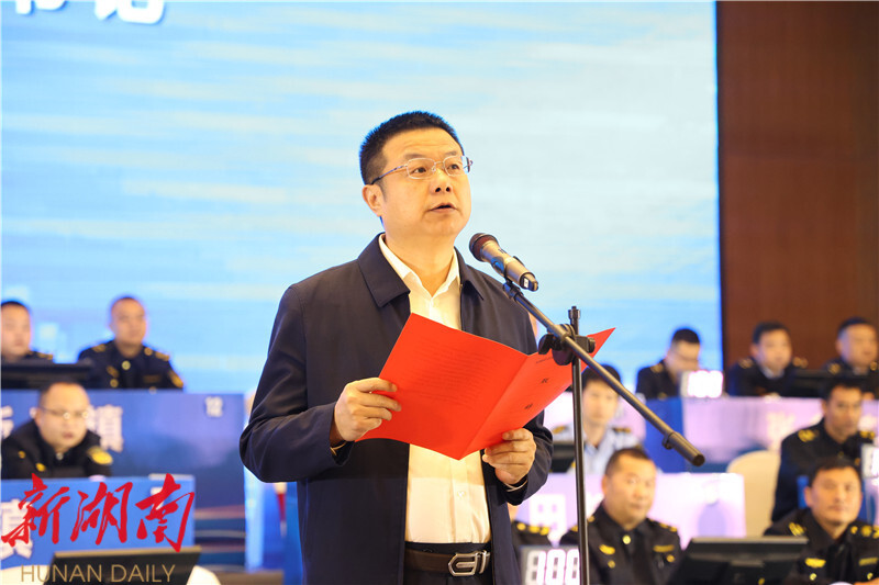 张哲君在致辞中肯定了全县行政执法队伍的工作成效。他指出,近年来,全县行政执法队伍围绕中心、服务大局,为全县经济社会高质量发展筑牢了法治根基。此次大比武既是对执法队伍能力的集中检验,更是贯彻全面依法治国方略、巩固法治政府示范县创建成果、推动执法规范化建设向纵深发展的重要举措。他希望全体参赛队员将赛场经验与本领转化为日常执法实效,深化严格规范公正文明执法,让群众在每起案件中都感受到公平正义;各执法部门以此次活动为新起点,强化法治意识、创新执法方式、提升服务效能,锻造“政治坚定、业务精通、作风优良、执法为民”的行政执法铁军,为“平安岳阳县、法治岳阳县”提供坚实保障。