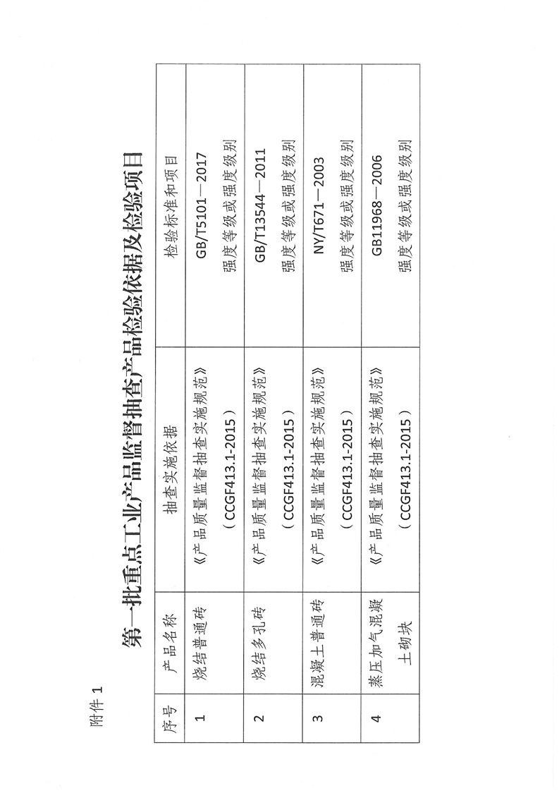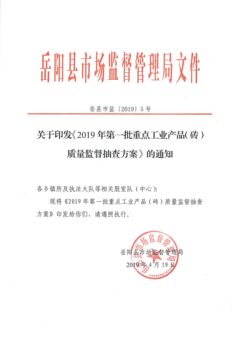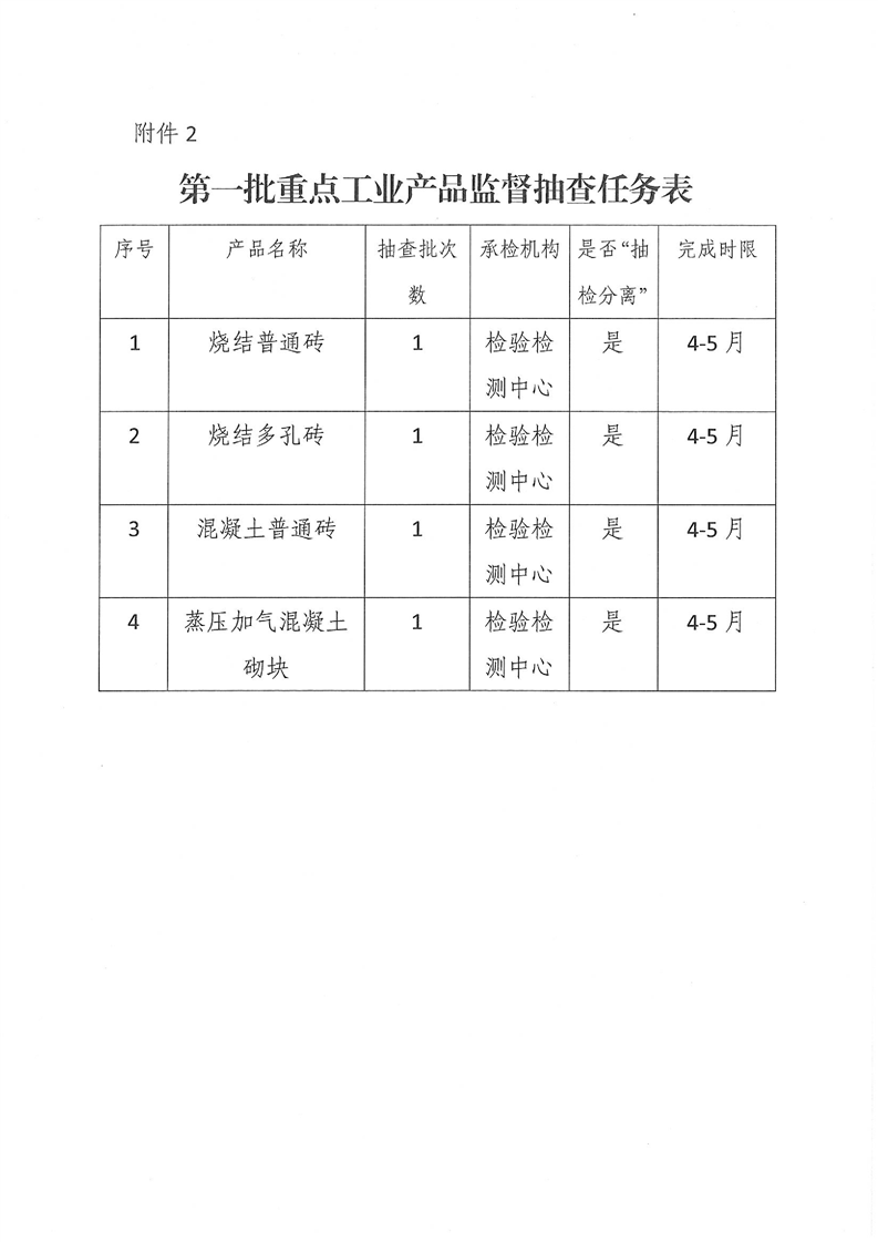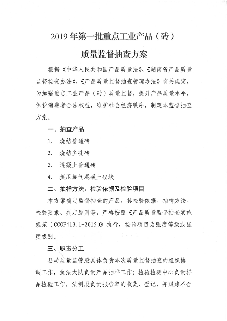 关于印发《2019年第一批重点工业产品(砖)质量监督抽查方案》的通知