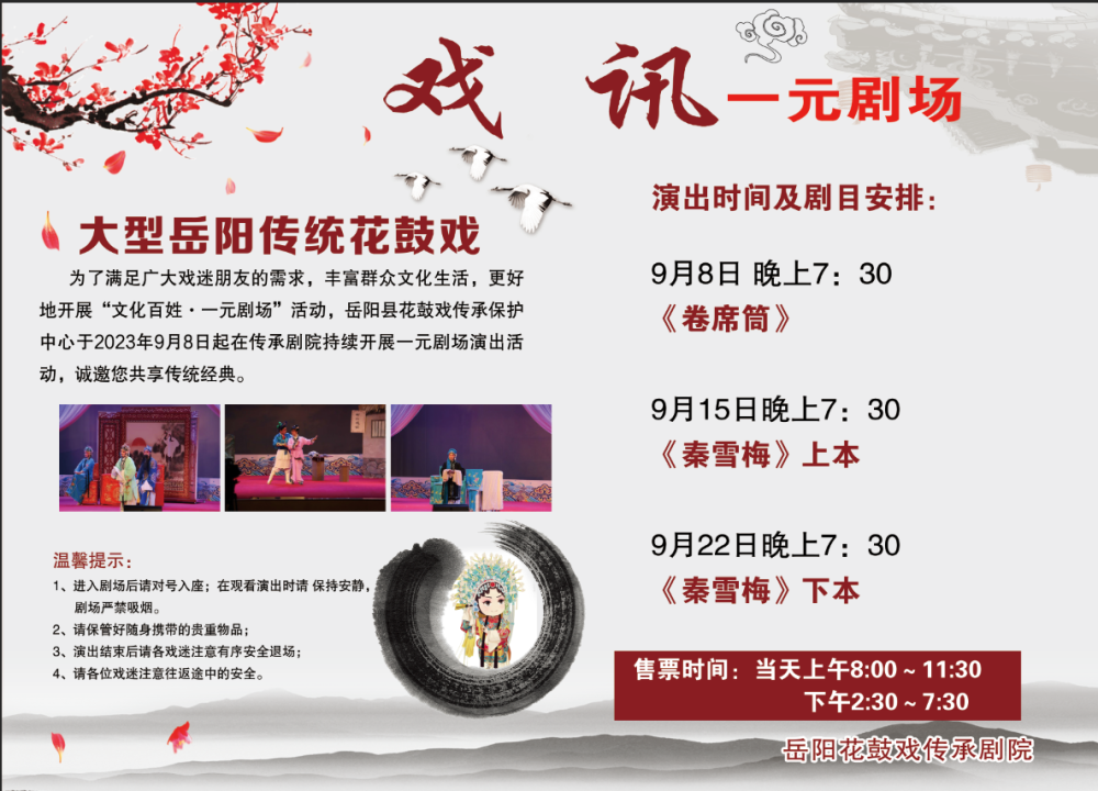 “一元剧场”是岳阳县文化馆2012年创办的一项文化惠民品牌活动。所谓“一元剧场”,就是群众每次仅需花一元钱购票,就可到环境幽雅的剧院里享受一场高水准的文化大餐。每周五晚演出,目前已演出200余场次,惠及群众近17万人次,内容涉及戏曲、小品、歌舞、山歌、民乐等多个门类。“一元剧场”立足我县丰富的文化资源,以国家级非物质文化遗产保护项目——岳阳花鼓戏表演形式为主,以反映有关行业特色或时代主旋律的的小戏、小品、表演唱等表演形式为辅,做到雅俗共赏、老少皆宜。丰富广大群众精神文化生活,彰显我县文化特色,受到了社会各界的高度关注。《新华社》、《湖南日报》、《中国文化报》、《湖南领导参考》等多家媒体对“一元剧场”文化惠民活动作了专题报道,进行宣传推广,并入选《湖南宣传思想工作创新案例选编》。(供稿:岳阳县文化馆 黄晶晶)