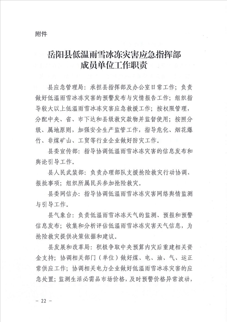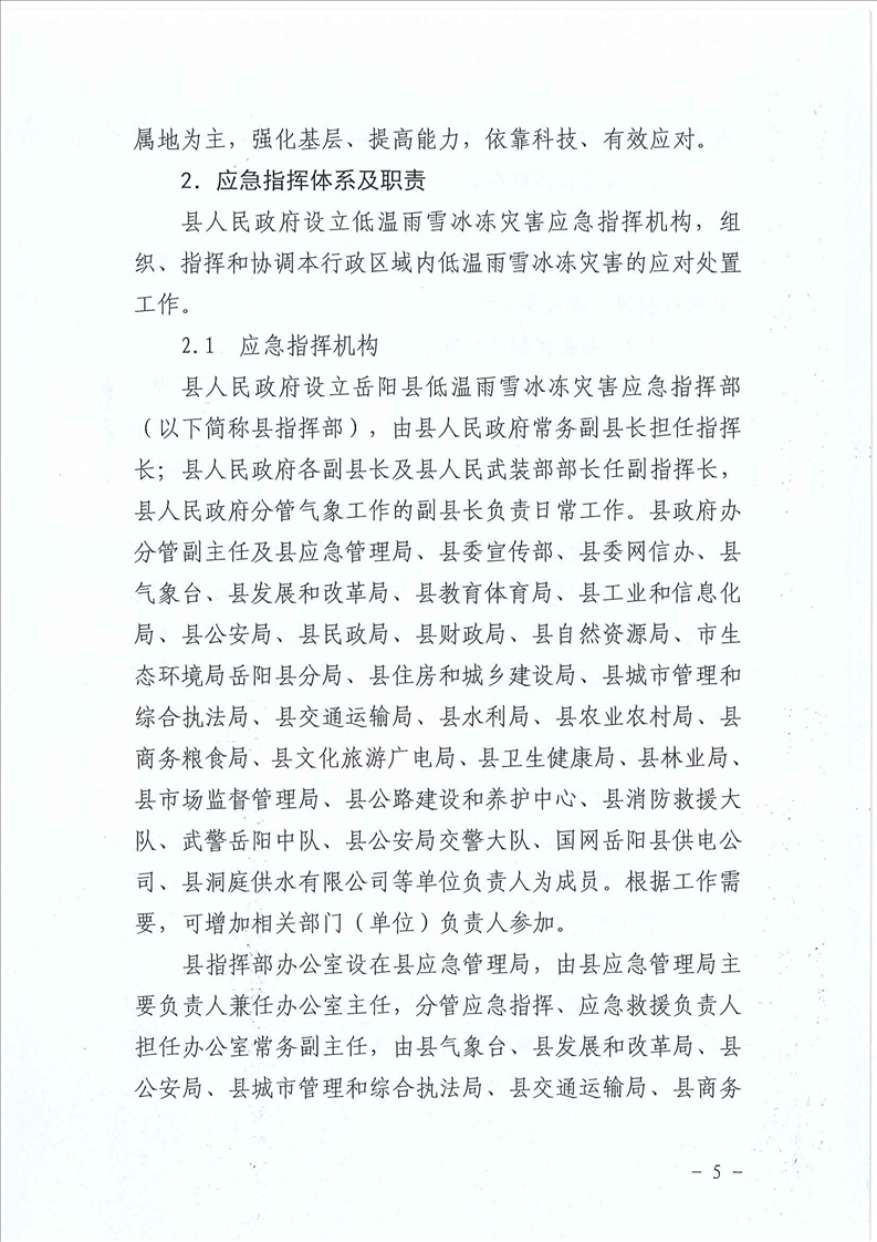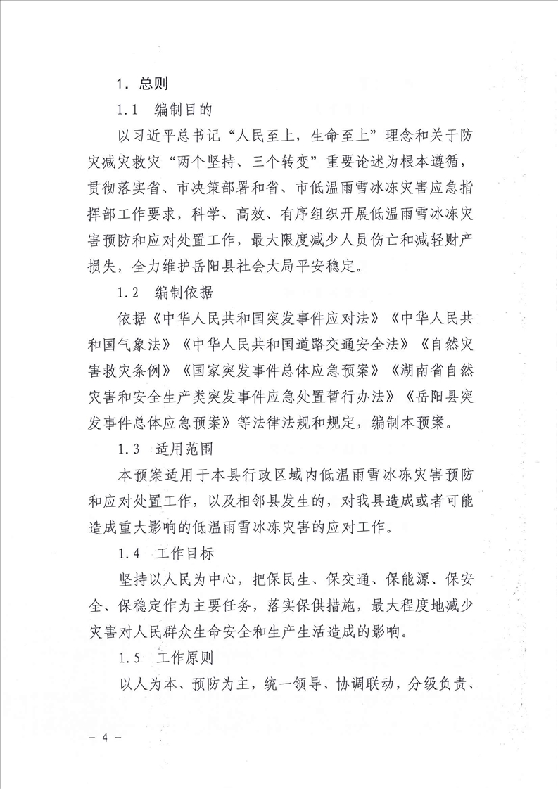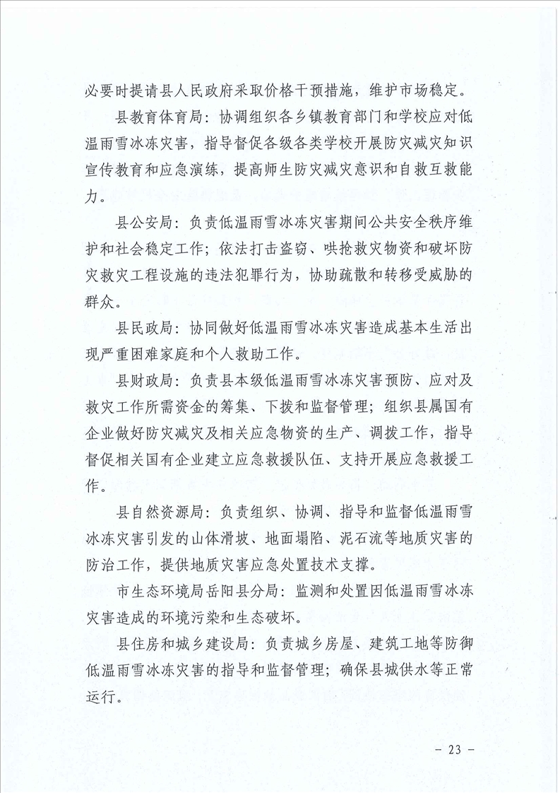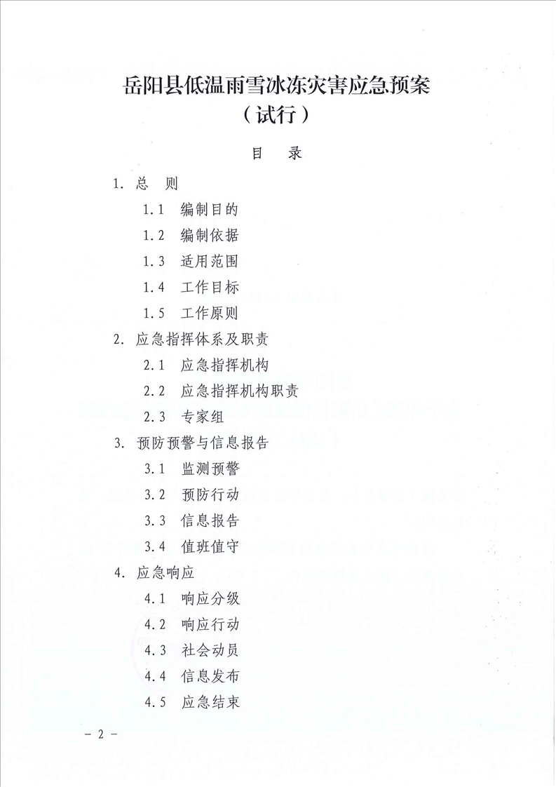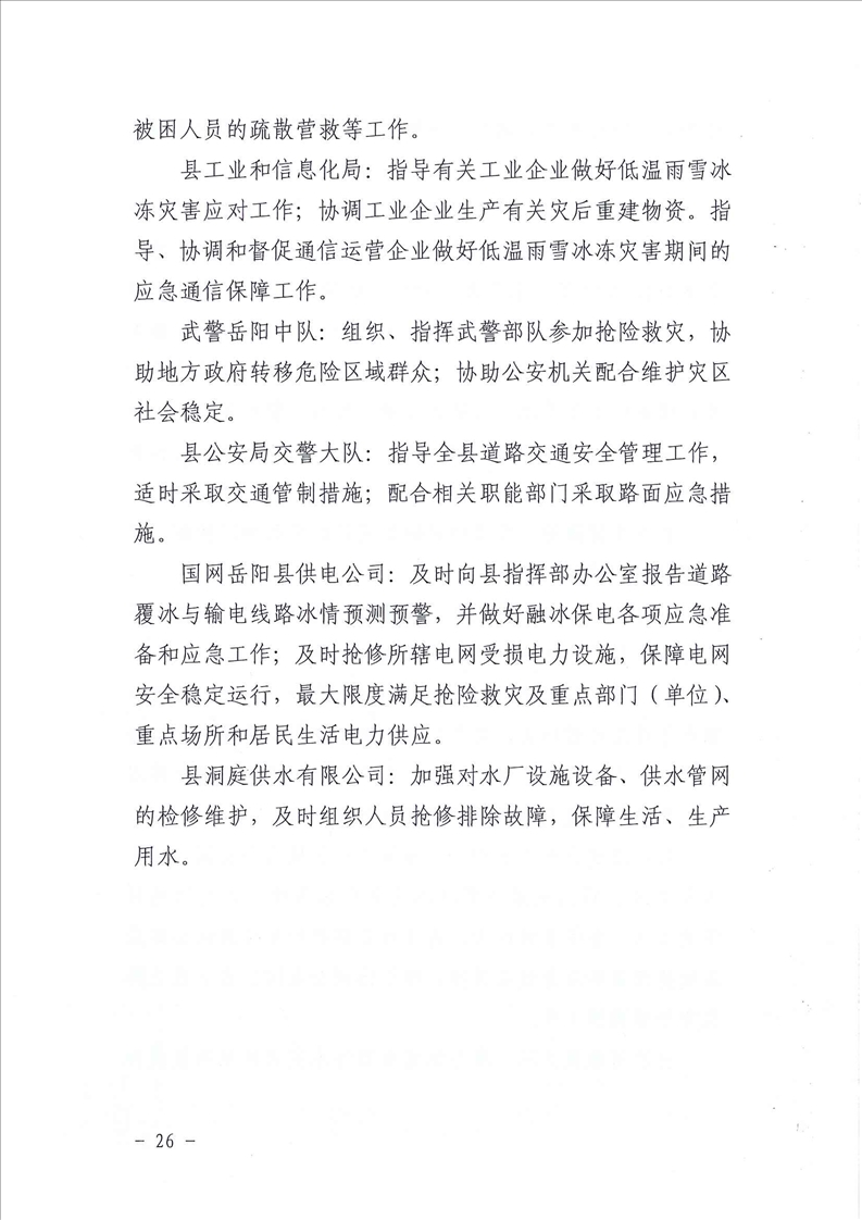 岳阳县低温雨雪冰冻灾害应急预案(试行)