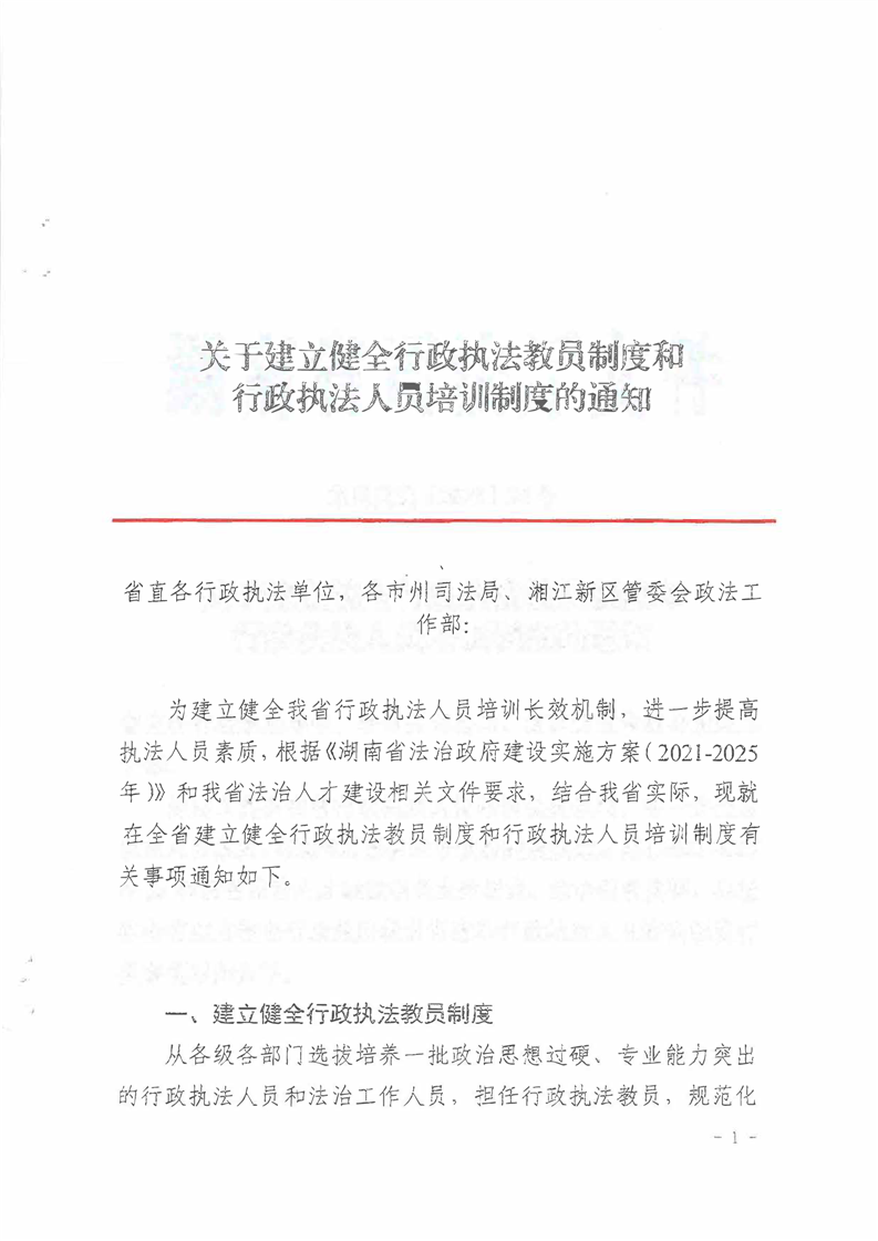 关于建立健全行政执法教员制度和行政执法人员培训制度的通知