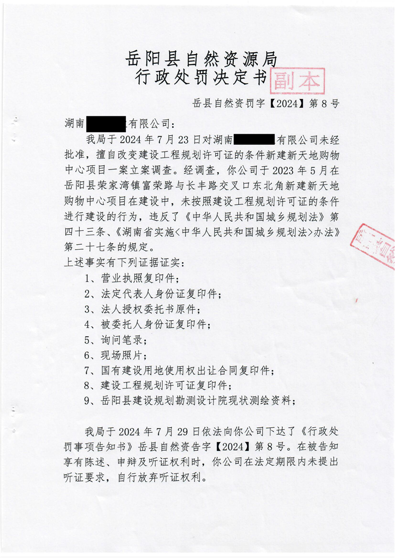 行政处罚决定书 岳县自然资罚决〔2024〕第8号