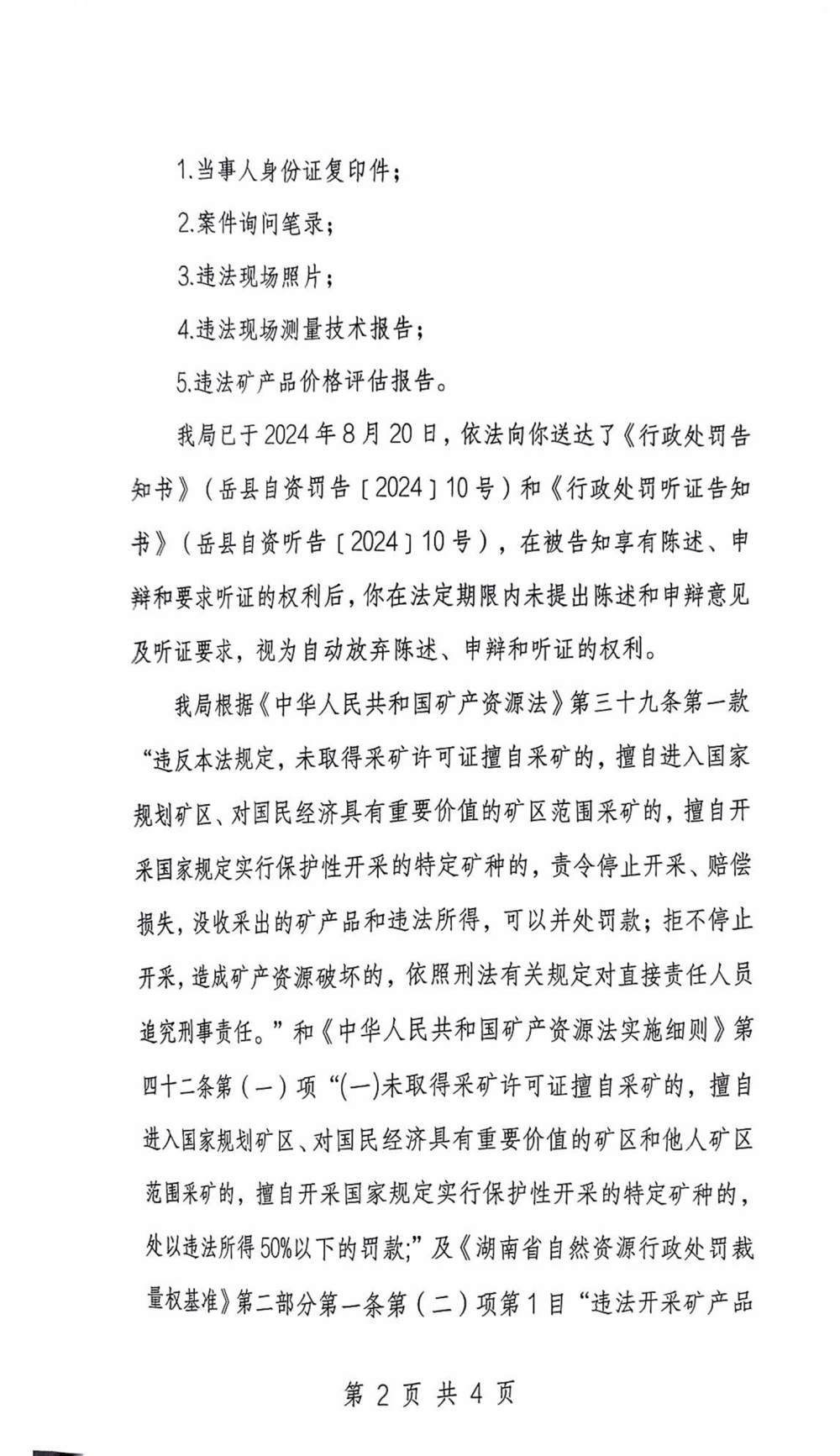 行政处罚决定书 岳县自然资罚决〔2024〕第10号