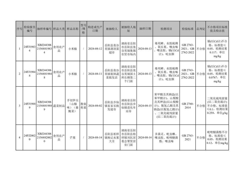 2024年9月18日食品抽检数据公示(不合格4批次)