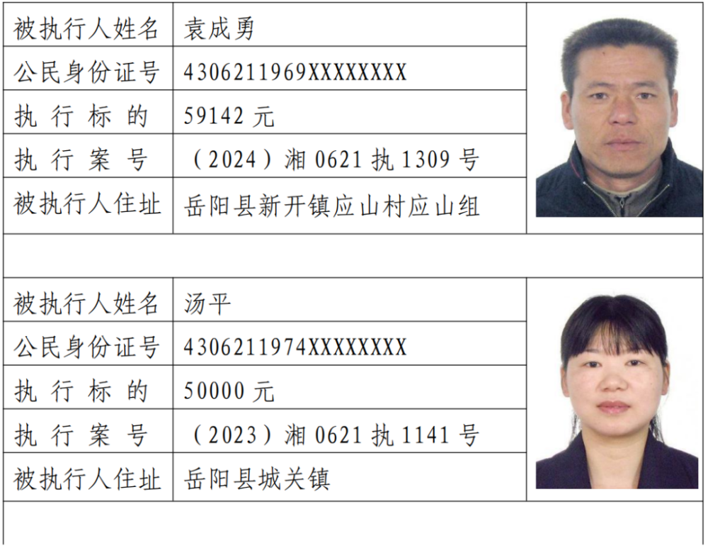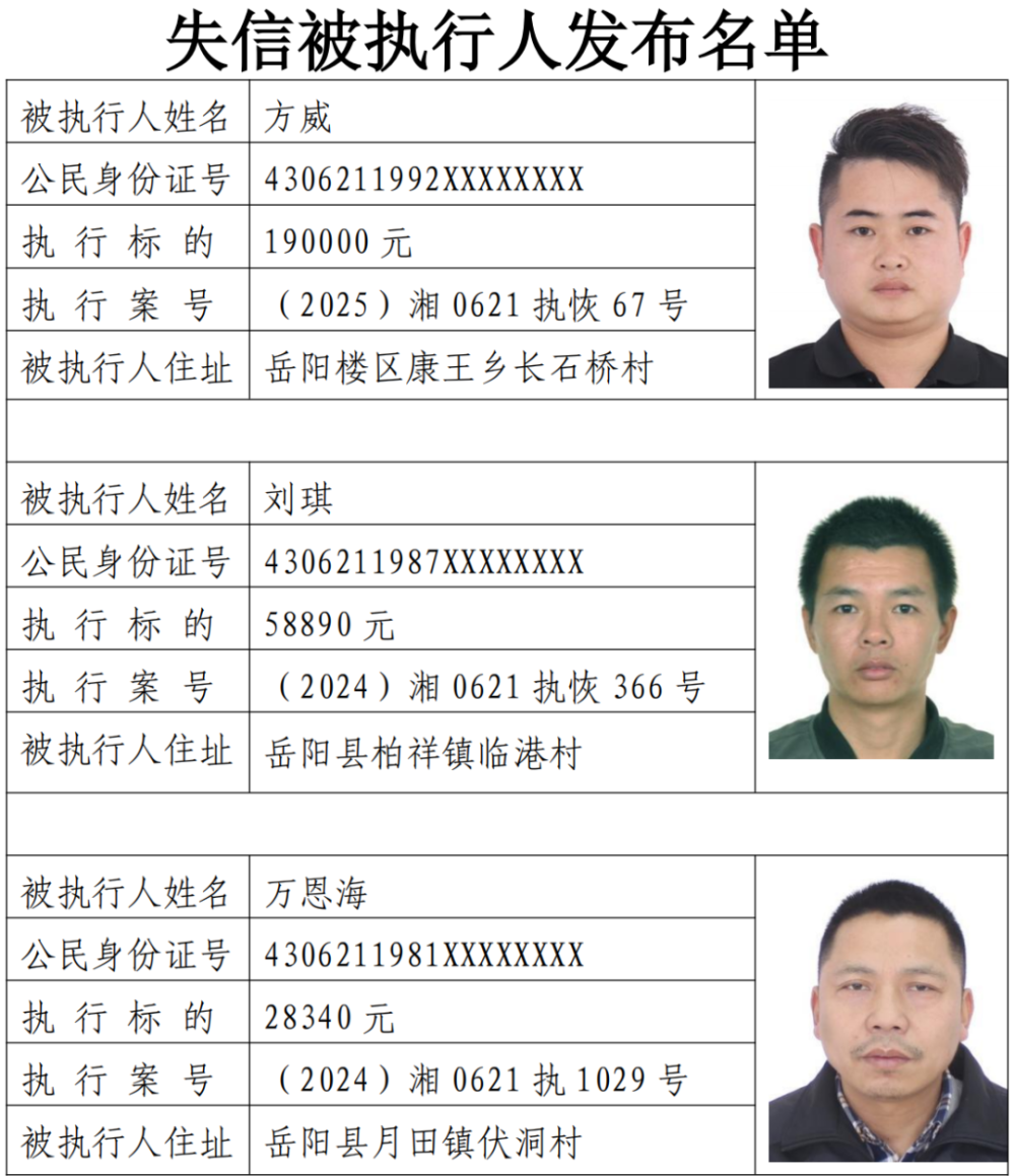 岳阳县失信被执行人名单(2025年第4期)