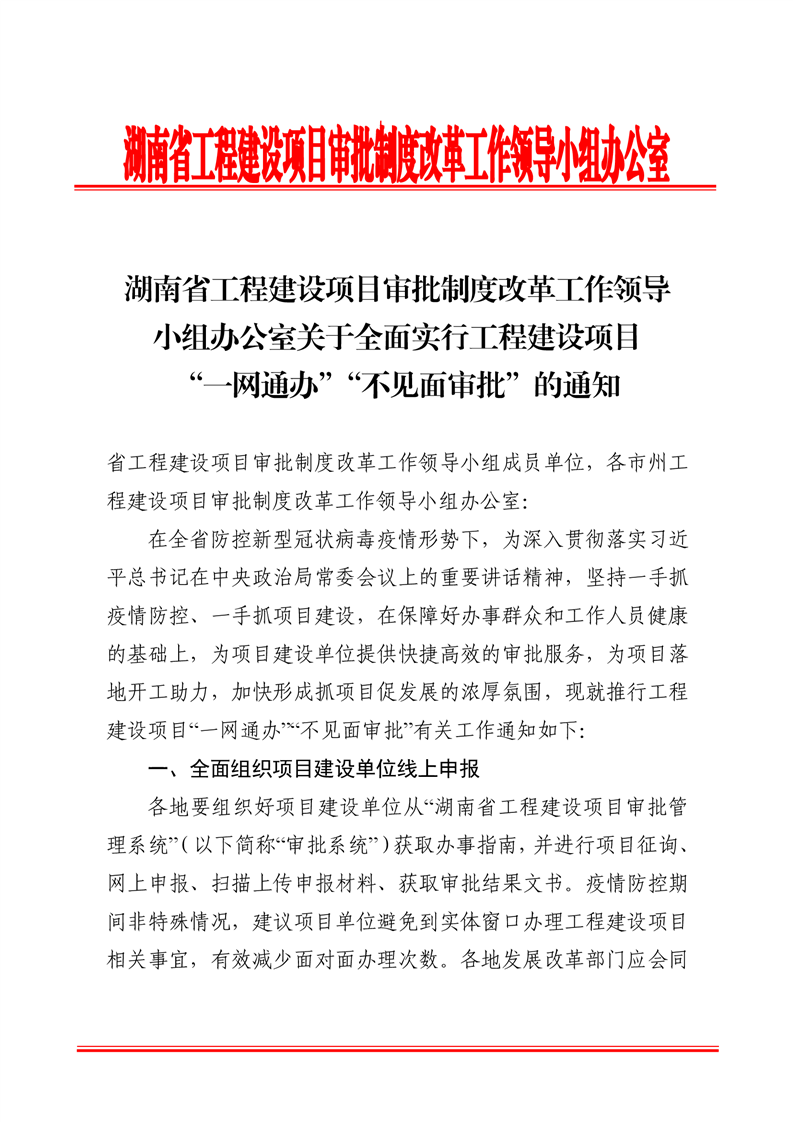 关于全面实行工程建设项目“一网通办”“不见面审批的通知