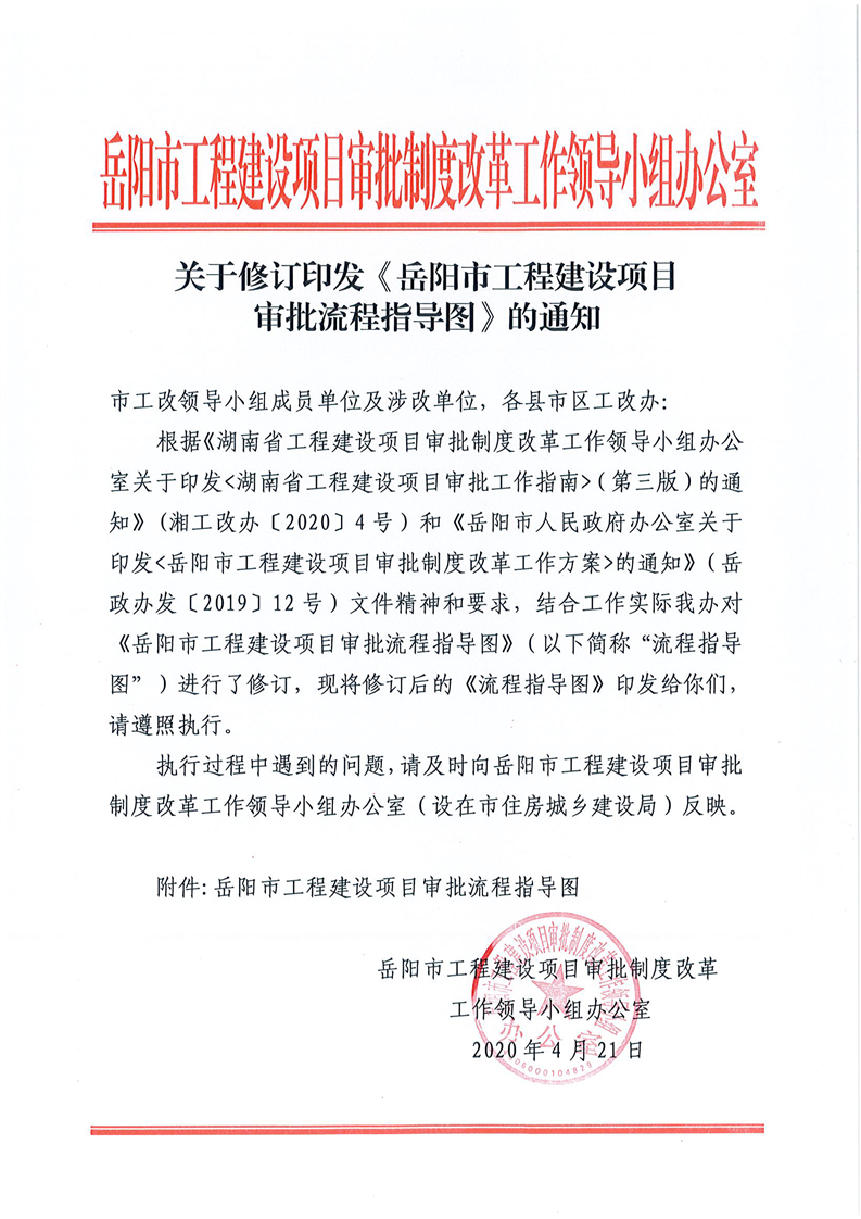 关于修订印发《岳阳市工程建设项目审批流程指导图》的通知