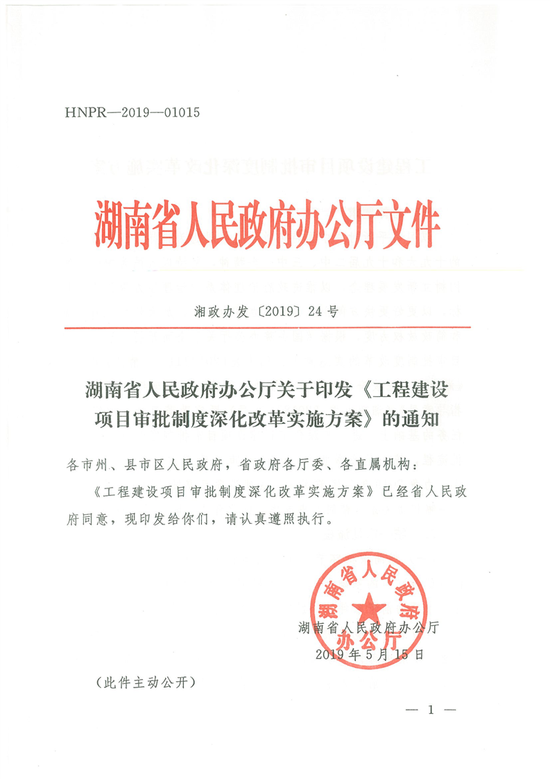 湖南省人民政府办公厅关于印发《工程建设项目审批制度深化改革实施方案》的通知