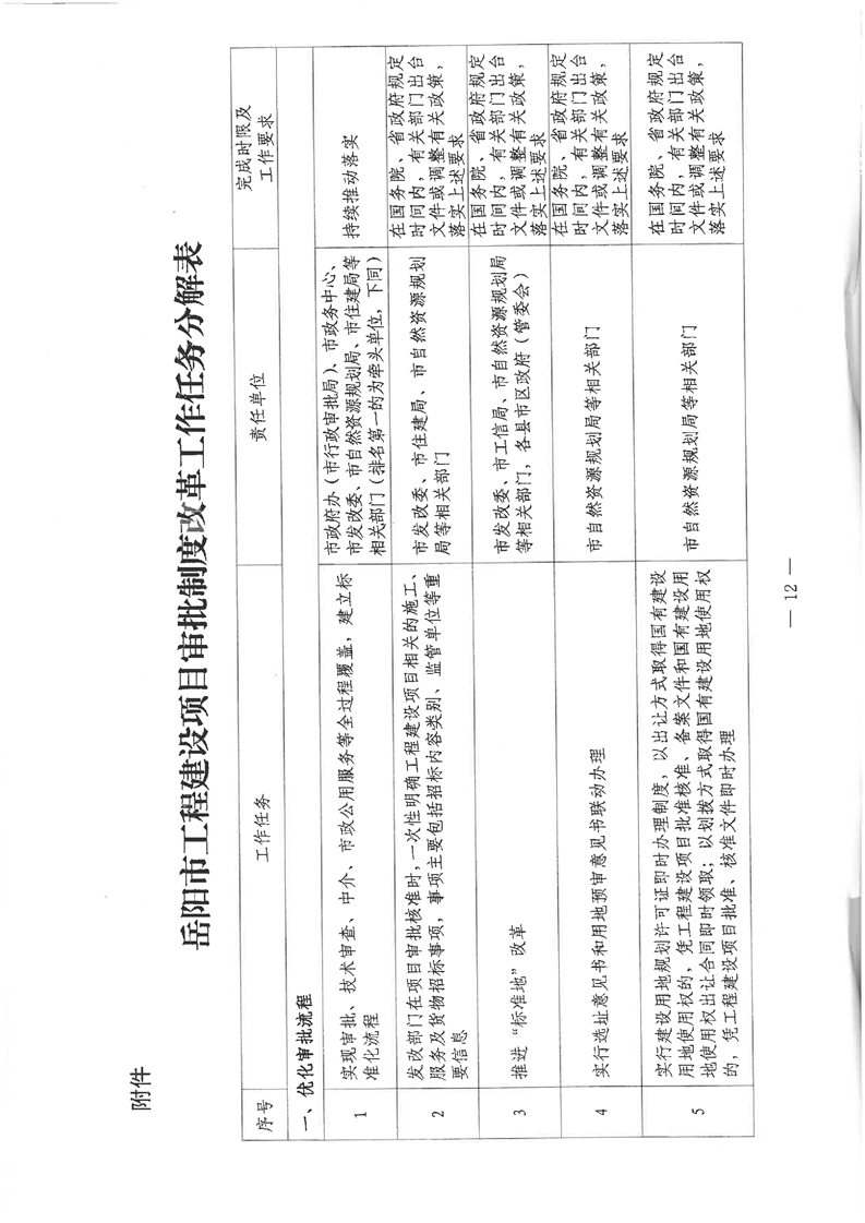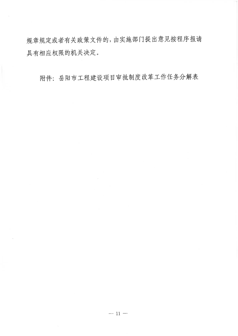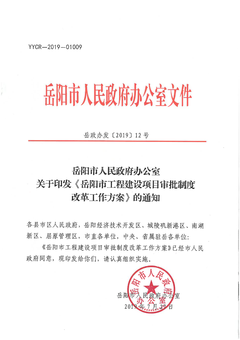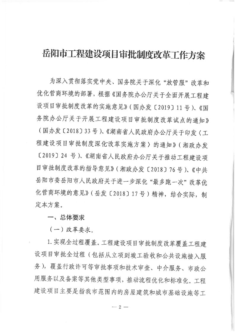 岳阳市人民政府办公室关于印发《岳阳市工程建设项目审批制度改革工作方案》的通知