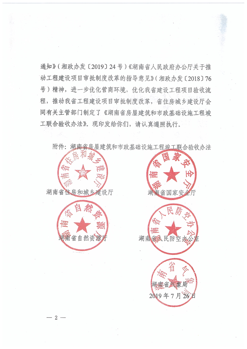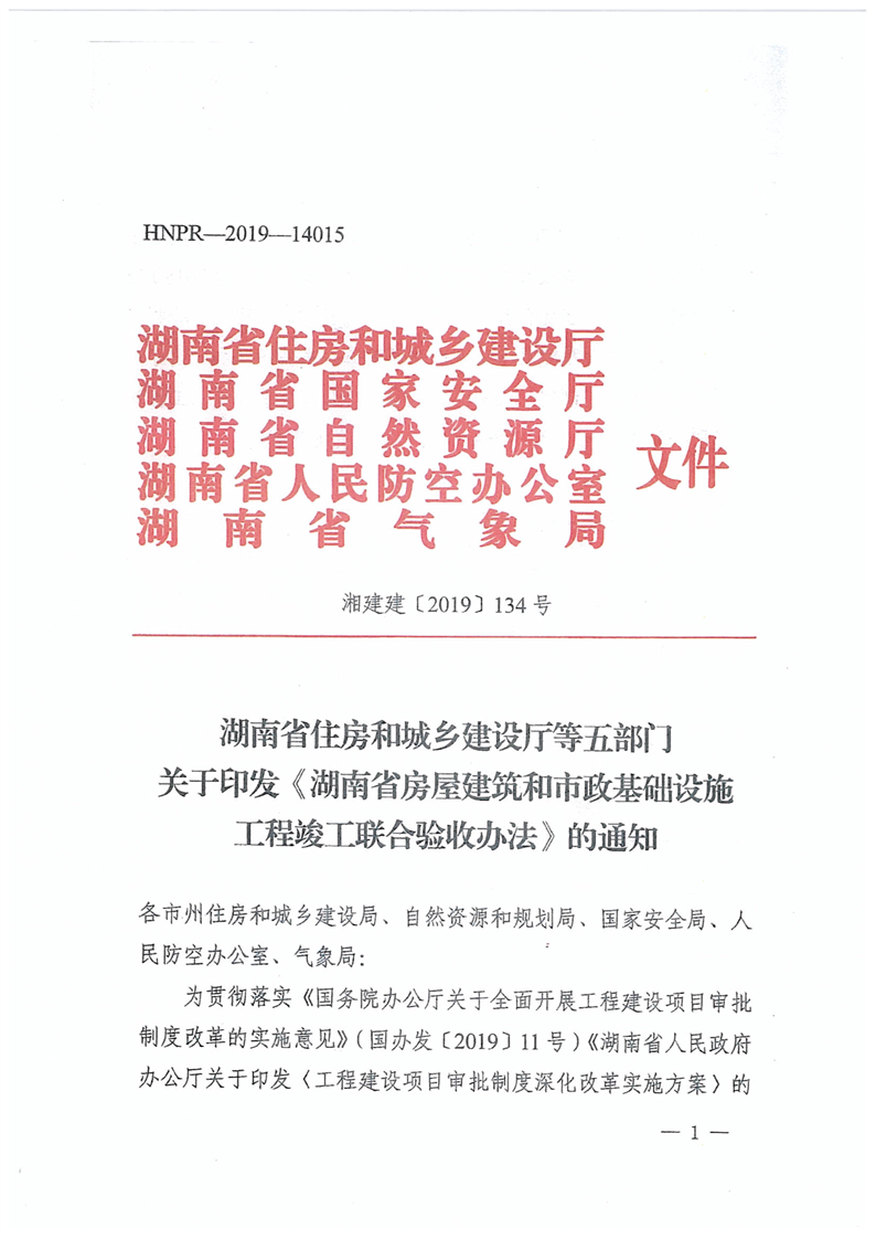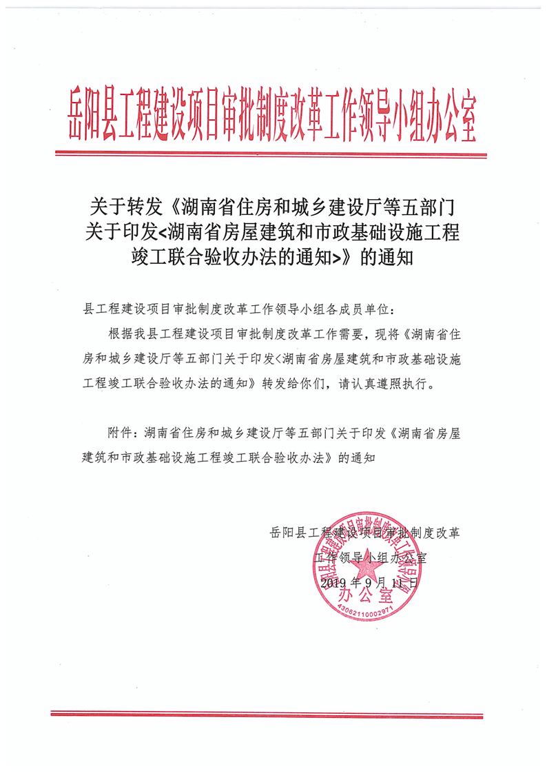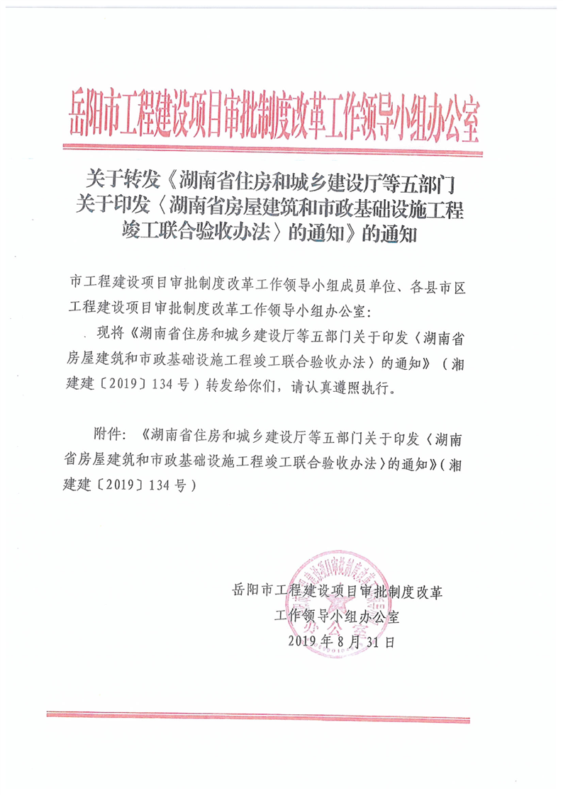 关于转发《湖南省住房和城乡建设厅等五部门关于印发 湖南省房屋建筑和市政基础设施工程竣工验收办法的通知》的通知