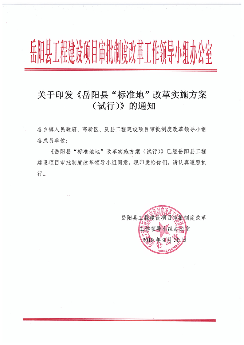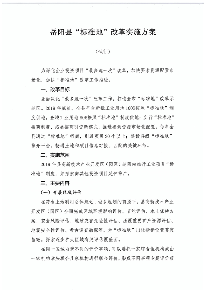 关于印发《岳阳县“标准地”改革实施方案(试行)》的通知