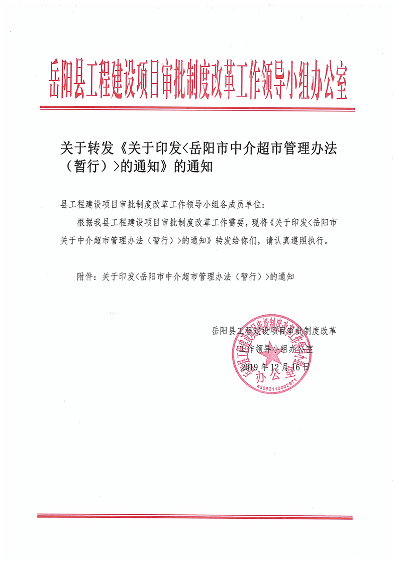 关于转发《关于印发 岳阳市中介超市管理办法(暂行)的通知》的通知