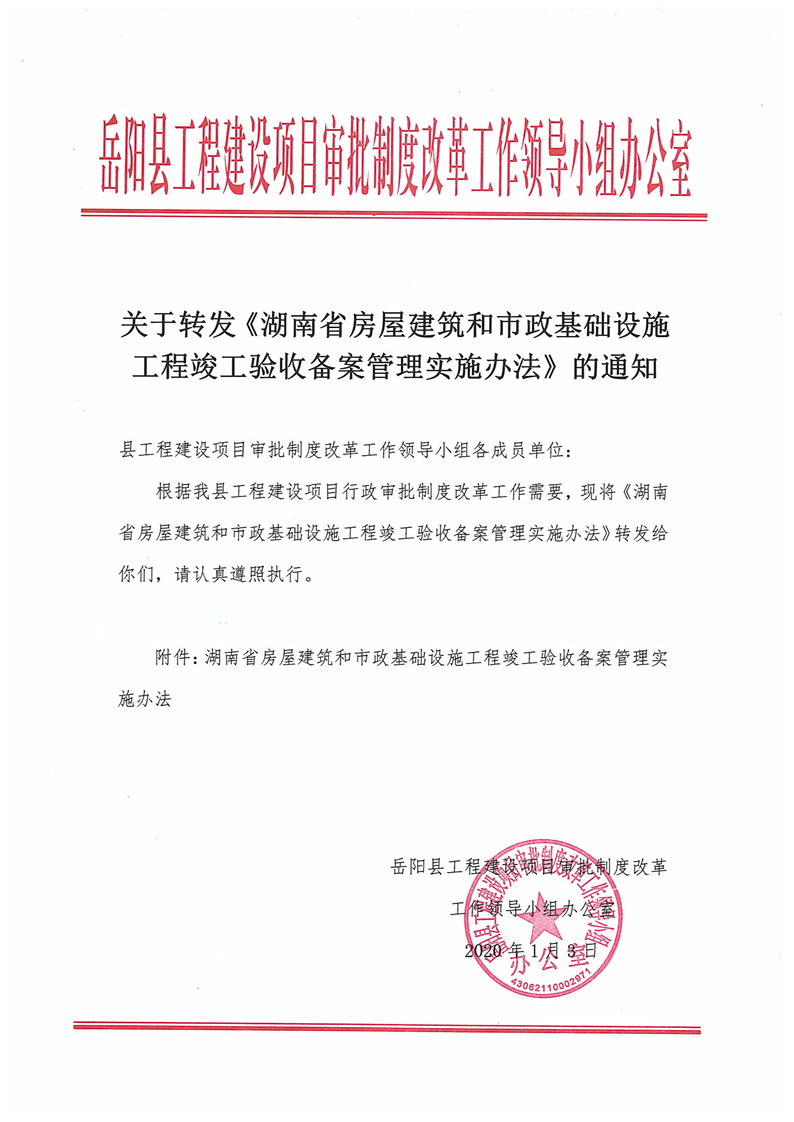 关于转发《湖南省房屋建筑和市政基础设施工程 竣工验收备案管理实施办法》的通知