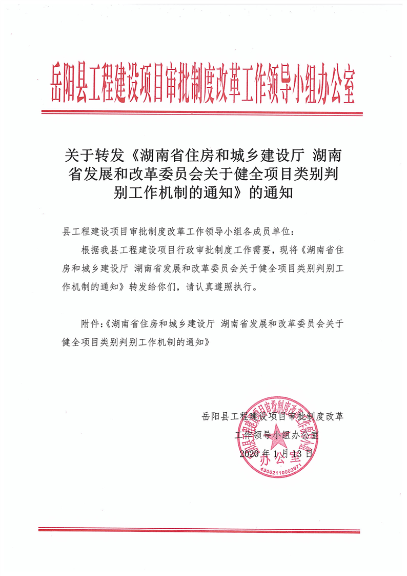 关于转发《湖南省住房和城乡建设厅 湖南省发展和改革委员会关于健全项目类别判别工作机制的通知》的通知