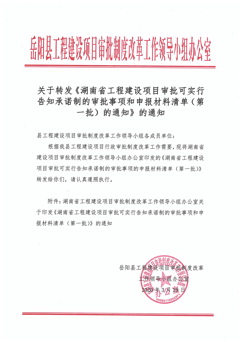 来源:岳阳县工程建设项目审批制度改革工作领导小组办公室