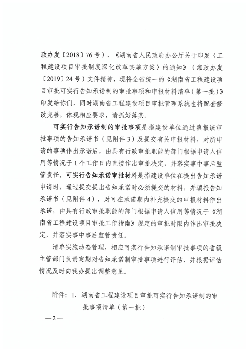 关于转发《湖南省工程建设项目审批可实行告知承诺制的审批事项和申报材料清单(第一批)的通知》的通知