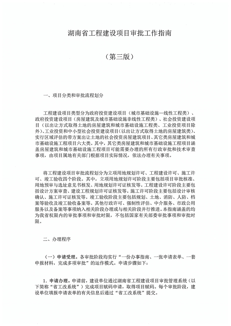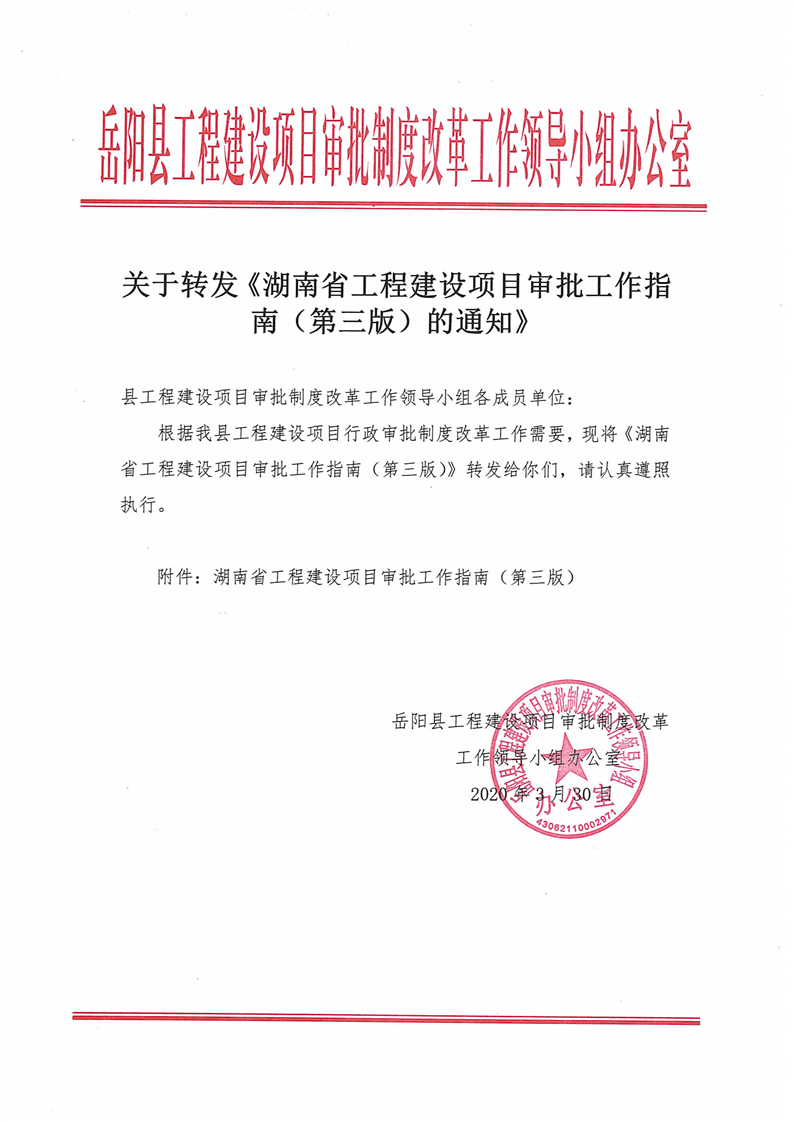 关于转发《湖南省工程建设项目审批工作指南(第三版)的通知》
