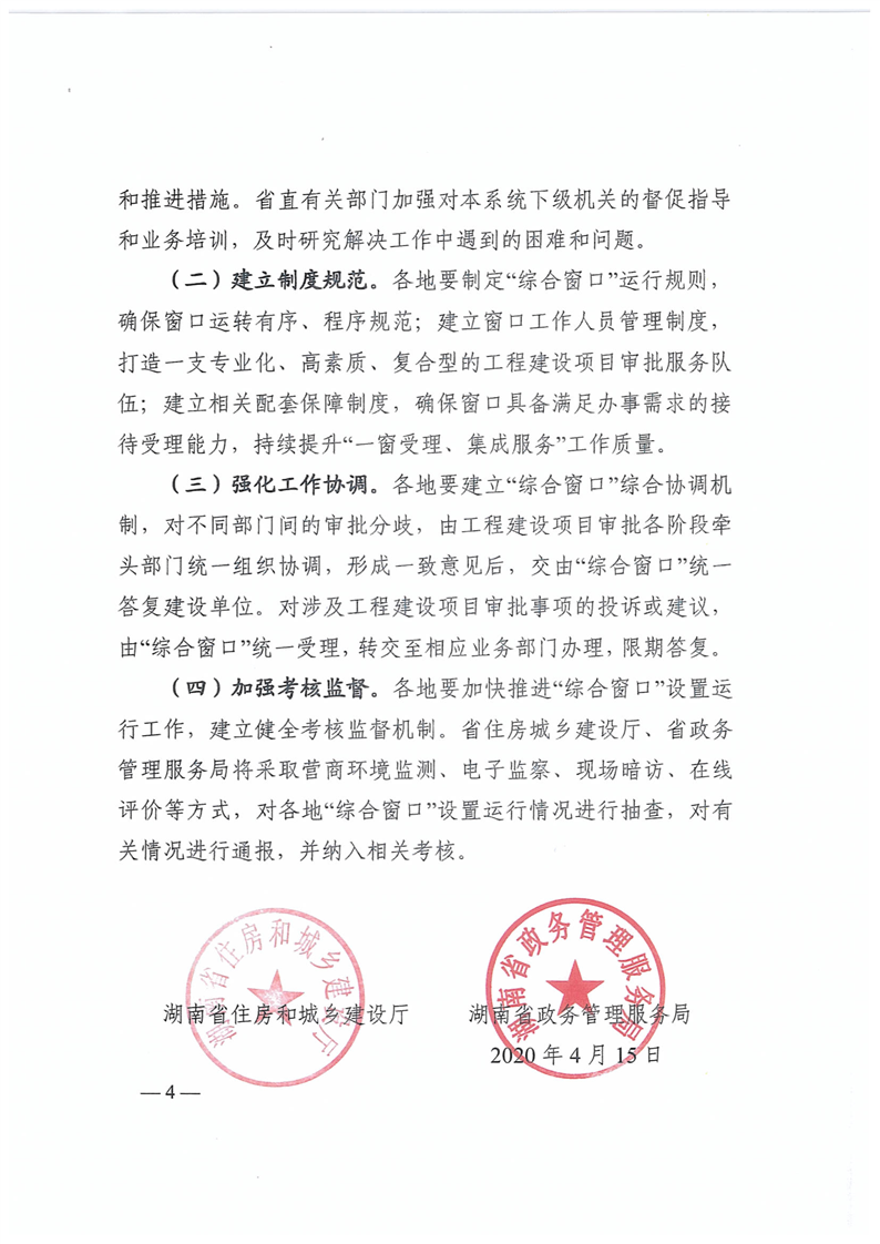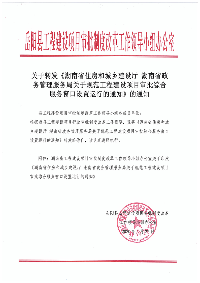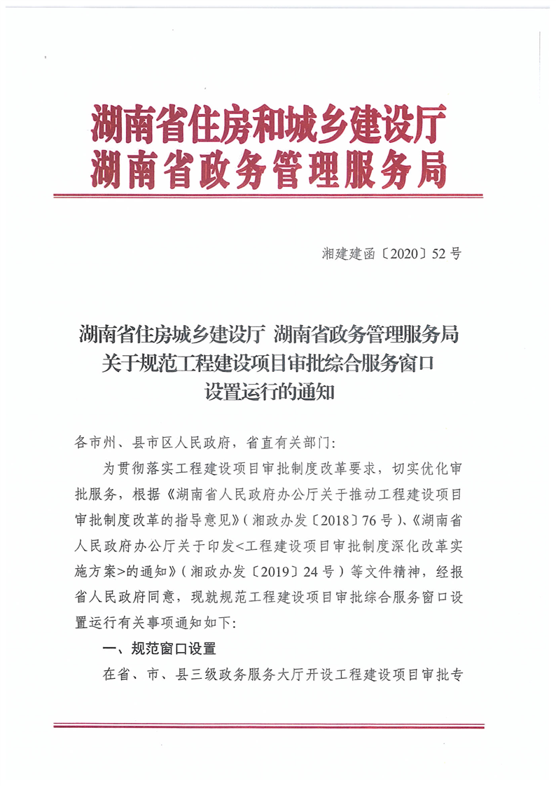关于转发《湖南省住房和城乡建设厅 湖南省政务管理服务局关于规范工程建设项目审批综合服务窗口设置运行的通知》的通知