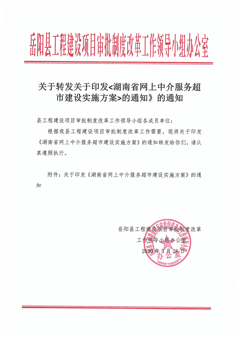 关于转发关于印发《湖南省网上中介服务超市实施方案》的通知