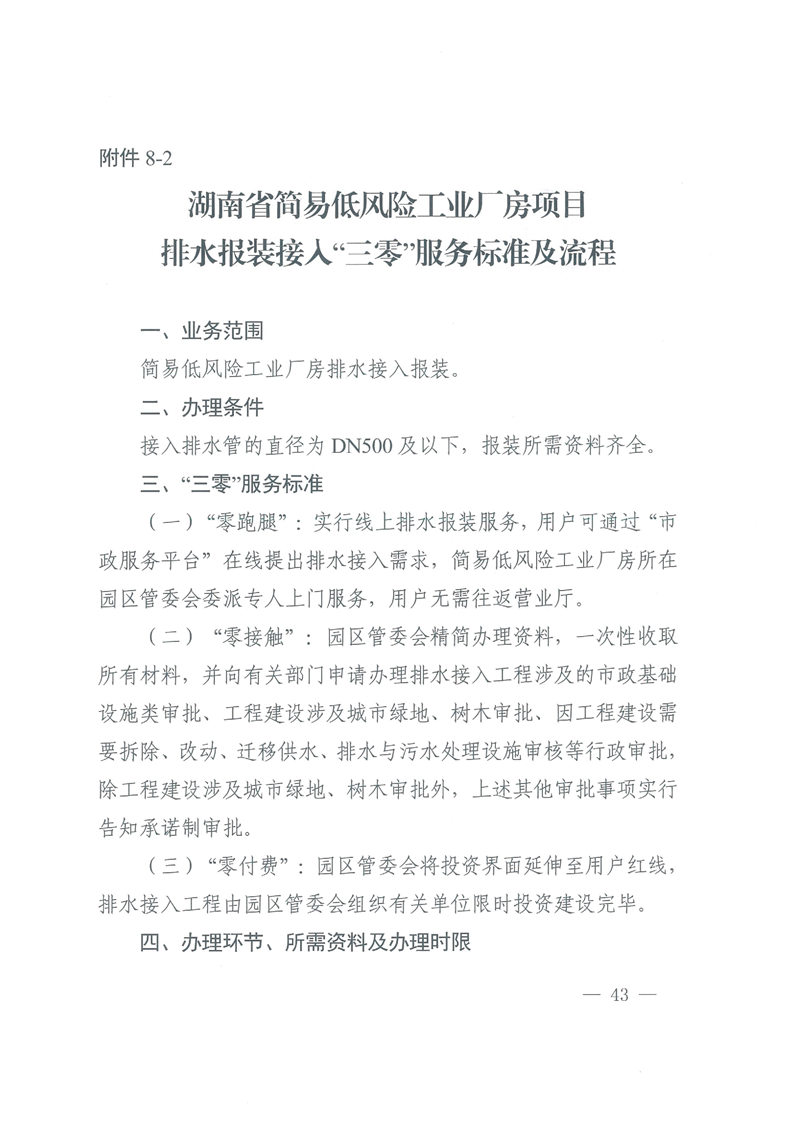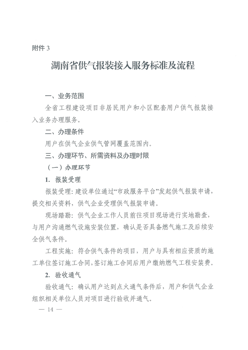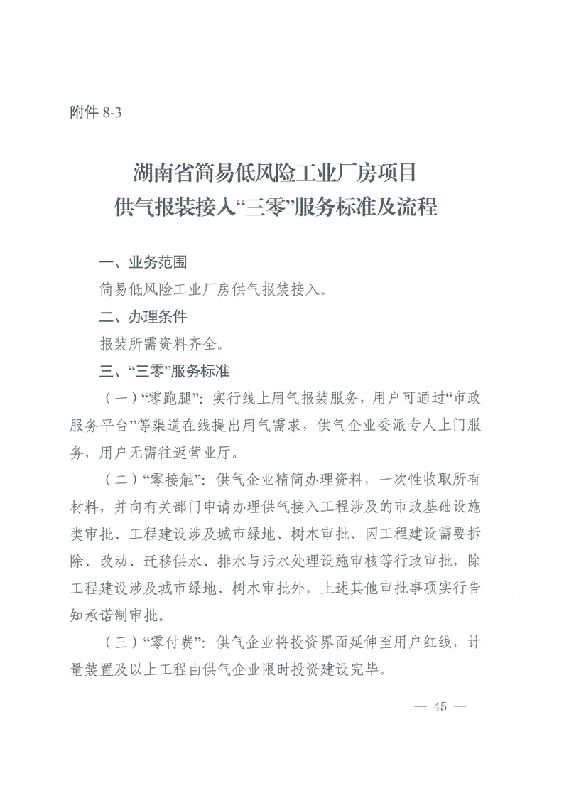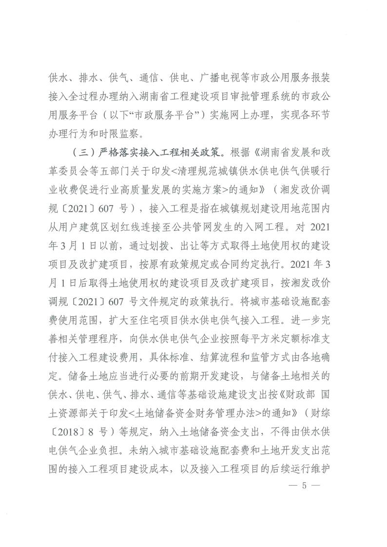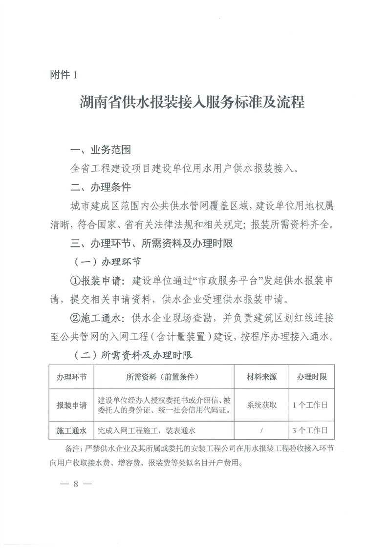 制度改革的实施意见》(国办发〔2019〕11号)、《湖南省人民政府办公厅关于推动工程建设项目审批制度改革的指导意见》(相政办发〔2018〕76号)、《湖南省人民政府办公厅关于印发<工程建设项目审批制度深化改革实施方案>的通知》(湘政办发〔2019]24号)、《湖南省人民政府办公厅关于印发<湖南省优化营商环境攻坚行动方案>的通知》(湘政办发〔2021〕18号)、《湖南省工程建设项目审批制度改革工作领导小组办公室关于印发<湖南省工程建设项目审批制度改革2.0版重点任务>的通知》(湘工改办〔2021)4号)要求,进一步简化优化供水、排水、供气、通信、供电、广播电视等市政公用服务报装接入办理流程,规范服务标准,我们制定了《湖南省工程建设领域市政公用服务报装接入办事指南(第二版)》。现印发给你们,请遵照执行。本通知自2022年4月1日起实施。