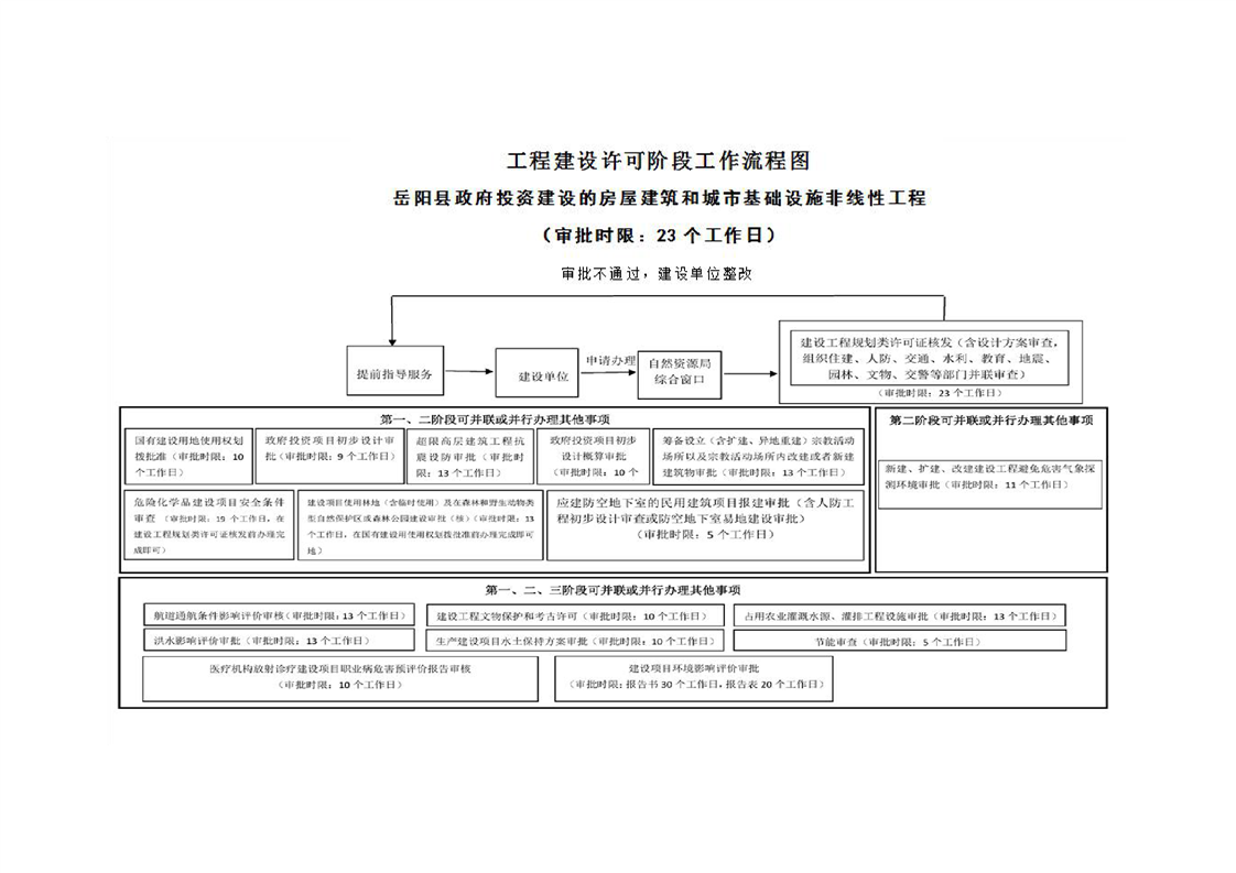 工程建设许可阶段工作流程图(岳阳县政府投资建设的房屋建筑和城市基础设施非线性工程)