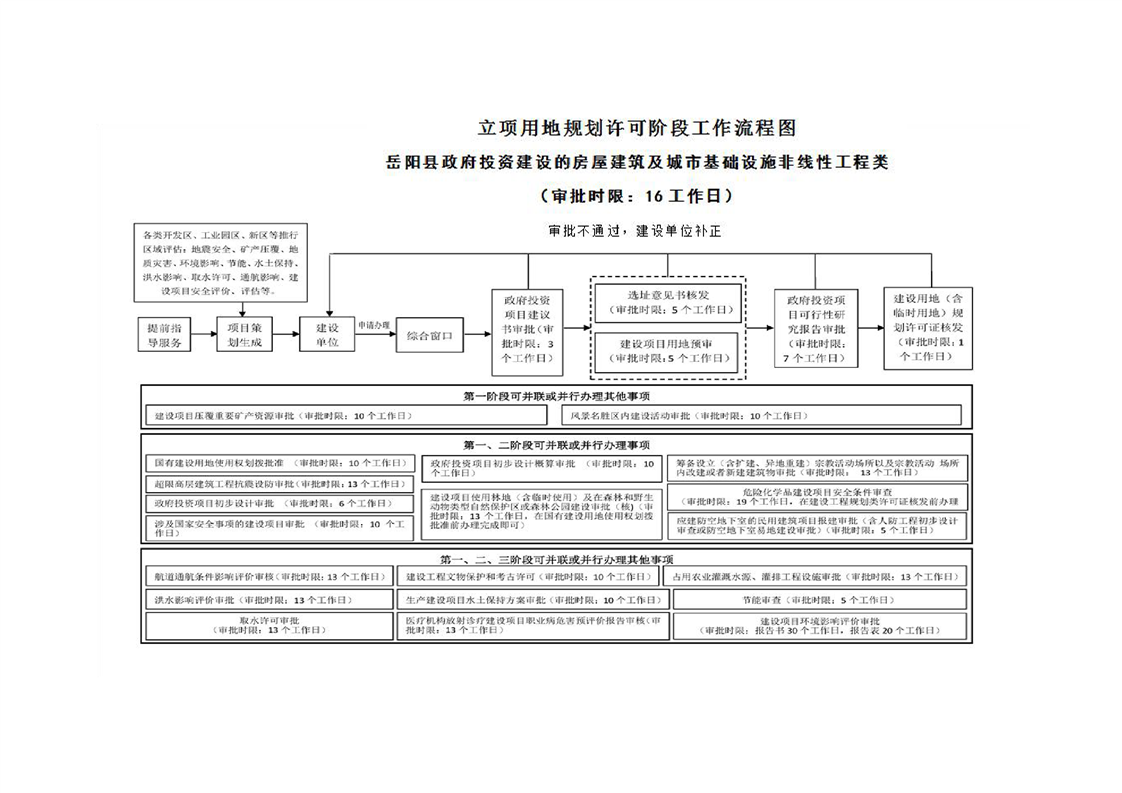 立项用地规划许可阶段工作流程图(房屋建筑及城市基础设施非线性工程类)