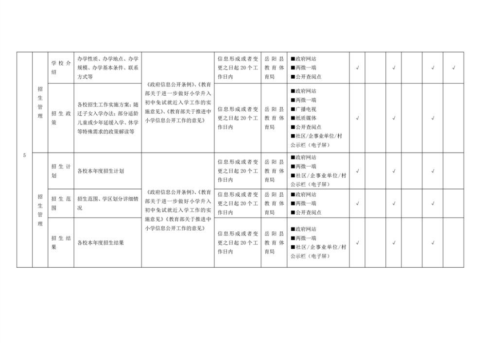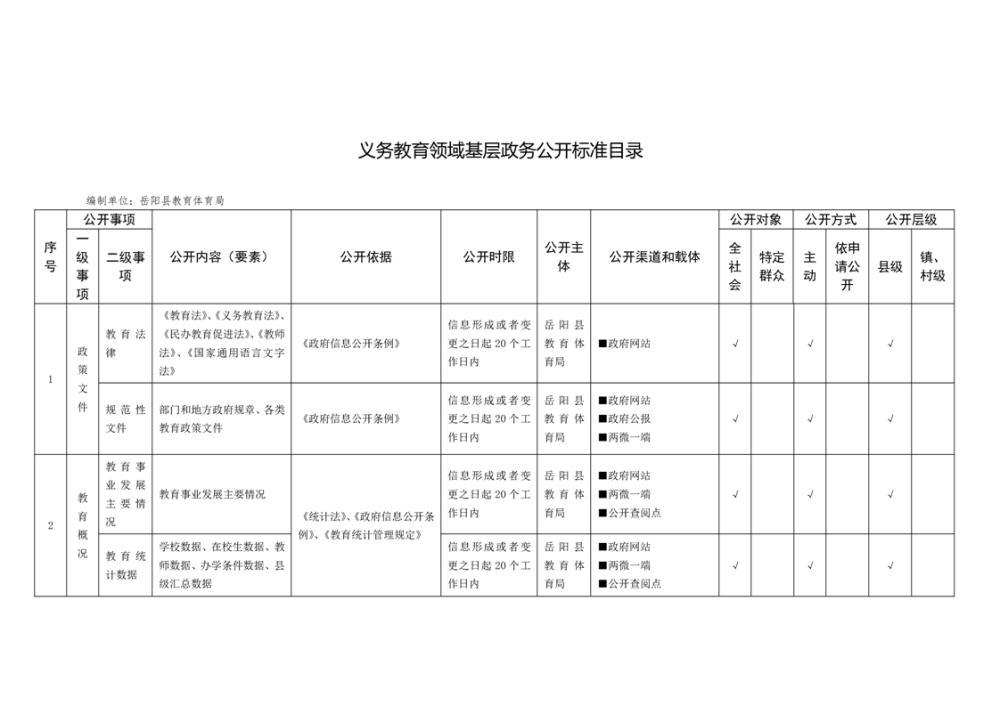 2024年岳阳县义务教育领域基层政务公开标准目录