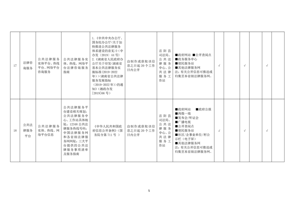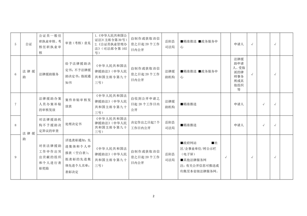 岳阳县公共法律服务领域基层政务公开标准目录