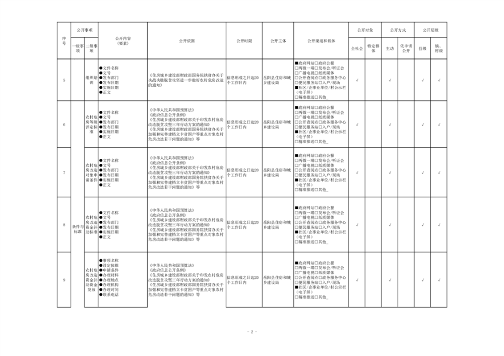 2024年岳阳县农村危房改造领域基层政务公开标准目录