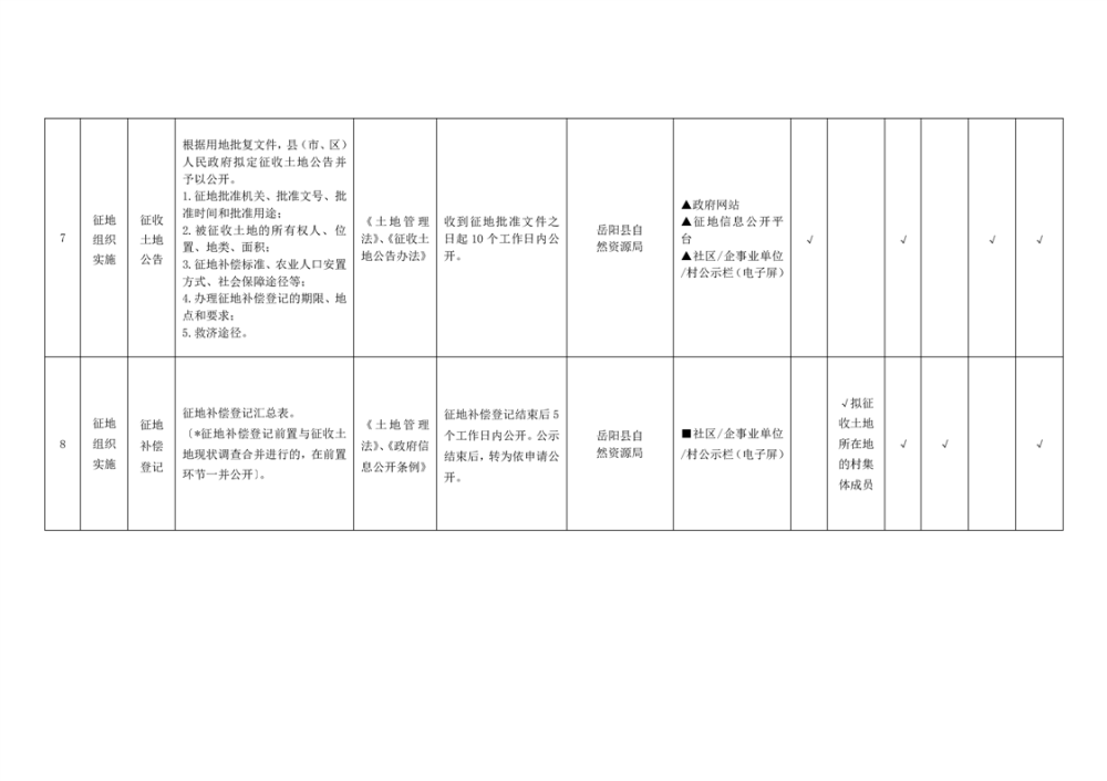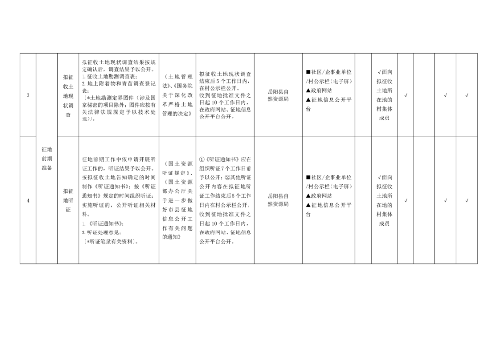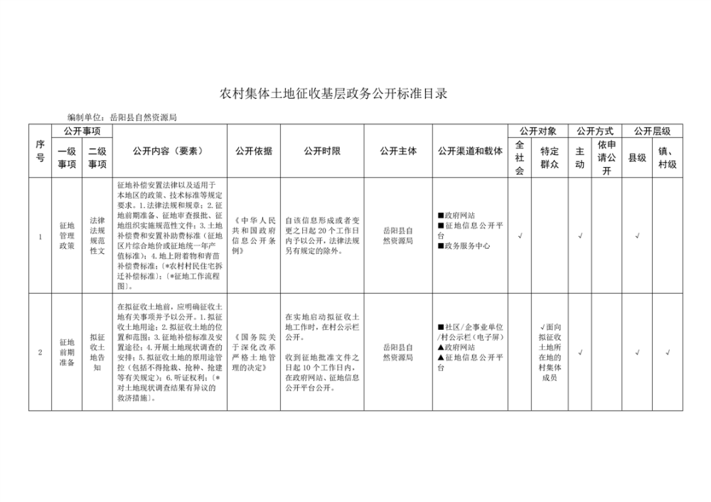 岳阳县农村集体土地征收基层政务公开标准目录
