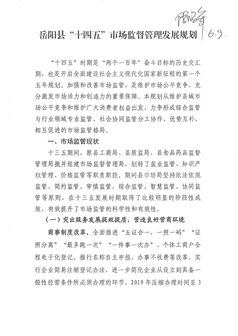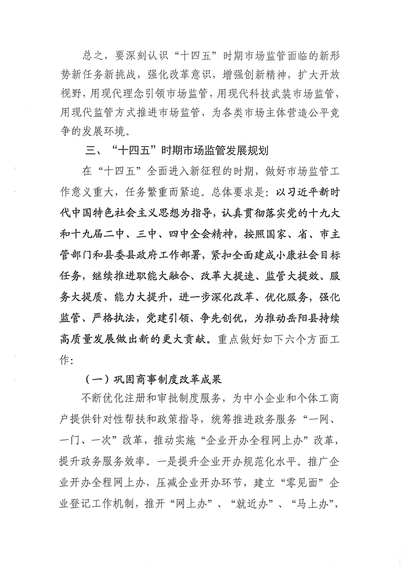 岳阳县市场局“十四五”发展规划