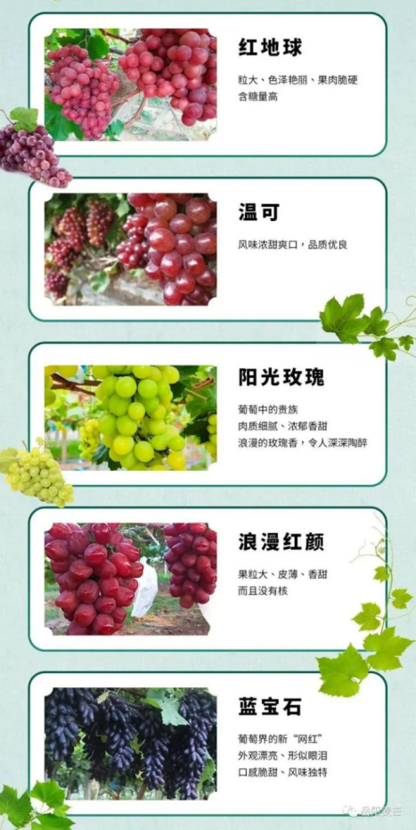 新墙作为湘北最大、种植时间最久、品种最多的葡萄种植基地,园内种有阳光玫瑰、夏黑、红宝石、温可、红地球、美人指等二十多个品种。