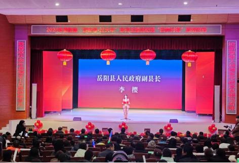 岳阳县委常委、县委宣传部部长张哲君、县政协副主席张忠新、县人民政府副县长李樱、县商务粮食局局长邹飞跃等县领导和全县各界群众欢聚一堂,共迎新春佳节。启动仪式在激情昂扬的唢呐表演中拉开了帷幕,在热烈的掌声中县委宣传部长张哲君宣布了活动正式启动!
