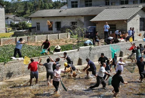 趣味农活比赛环节中,镇村干部开展了割禾比赛和打禾比赛,广大群众、游客参与了稻田抓鱼、抓鸡等活动,让大家在轻松愉悦的氛围中深度体验田间乐趣,同时也将喜庆的氛围推向了最高潮。