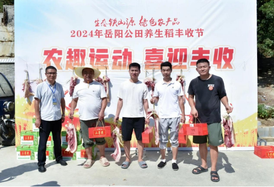 本次活动由岳阳县农业企业协会与湖南田米米生态农业有限公司主办,岳阳县一发康养合作社协办,中粮米业(岳阳)有限公司、中华联合财产保险公司、岳阳渔美康生物科技有限公司、湖南洞庭水湘食品有限公司、湖南人丛众食品有限公司、湖南稻花情酒业有限公司赞助,以“节俭办节 农民主体”主题,通过割禾比赛、打禾比赛、稻田抓鱼、抓鸡等传统的农事活动和趣味的体验项目,让年轻一代亲身感受农耕文化的魅力,让群众和游客在欢声笑语中感受丰收节的蓬勃活力。